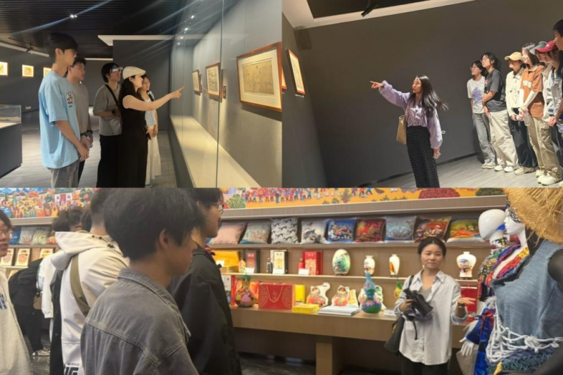 第二站——鄠邑区农民画博物馆。作为西北地区农民画艺术的璀璨明珠,收藏了大量反映农村生活、自然风光及民俗风情的农民画作品。在老师的讲解指导下,学生们系统梳理农民画从起源到发展的脉络,深入研究创作技法与表现形式。一幅幅色彩鲜艳、充满生活气息的农民画,以质朴的笔触勾勒出关中地区的民俗风情与劳动人民的智慧结晶。课堂延伸至馆内,师生围绕艺术与生活的关系展开热烈讨论,将理论知识与鲜活的艺术实践紧密结合。