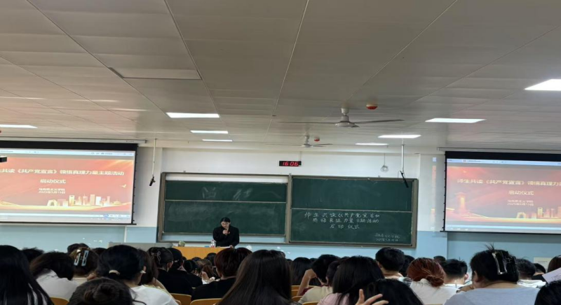 在全场师生的共同见证下,师生共读“《共产党宣言》 领悟真理力量”主题活动正式启动。据悉,此次主题活动将通过开展主题讲座、沙龙活动和诵读比赛等多种形式,为师生们搭建起深入学习交流的平台,营造浓厚的学习氛围,让《共产党宣言》的真理力量在校园里不断传播、生根发芽,激励全体师生为实现中华民族伟大复兴的中国梦贡献力量。