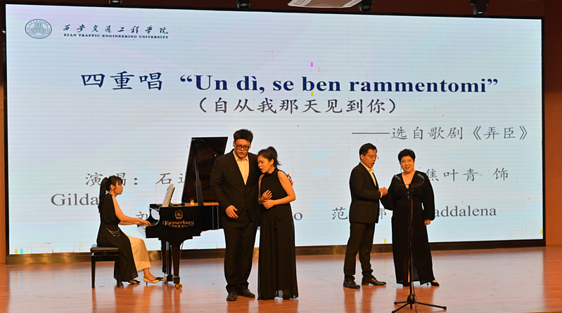 交流活动的第三阶段,周玲教授团队带来了一场高水准的视听盛宴。团队成员们用精湛的演唱技巧和深情的演绎,为在场师生呈现了多首经典曲目,涵盖了不同风格和时期的音乐作品。从西方古典歌剧到中国民族声乐,每一首歌曲都展现了独特的艺术魅力。这场音乐会不仅是一次听觉的享受,更是一次从理论到实践的生动展示,拓宽了他们的艺术视野,激发了他们对音乐学习的热情。
