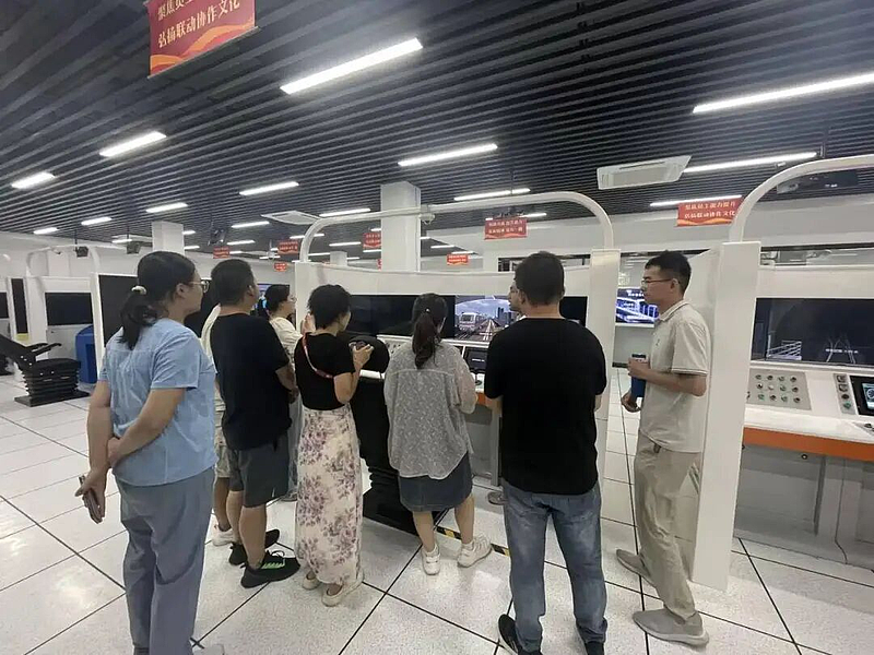 在“上海地铁关键岗位联动实训系统”的参观学习中,教师们体验了基于真实数据驱动的仿真培训平台。该平台可模拟各类正常、应急场景,实现行车、客运、调度、设备等多岗位的协同演练。大家纷纷表示,这种高度仿真的实训模式对培养学生的应急响应能力、团队协作意识和系统思维极具价值,为学院今后完善实践教学体系提供了重要参考。