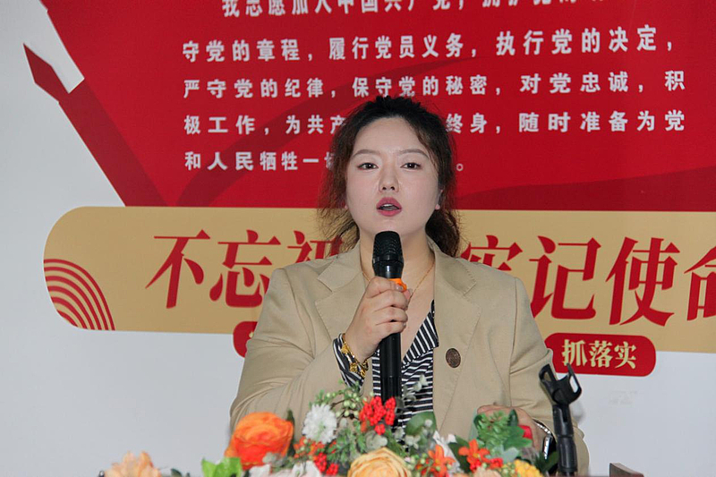 乾朝亿丰集团人力资源部部长陈芷珊汇报了实习工作,介绍集团为实习生定制的系统化培养体系,涵盖岗前培训、导师带教等环节,并对实习生提出三点期望:考取专业资格证书,夯实职业基础;养成持续学习习惯,紧跟财税政策;提升综合软实力,突破单一技能局限。