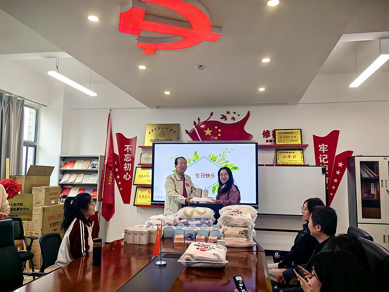 接着,在温馨的生日会中,大家齐声高唱《生日快乐歌》,“寿星”们在歌声中共同许下美好愿望,将现场气氛推向高潮。学院工会为“寿星”们送上了精心准备的生日蛋糕和礼品,每一份礼物都承载着学院对老师们深深的敬意与祝福。