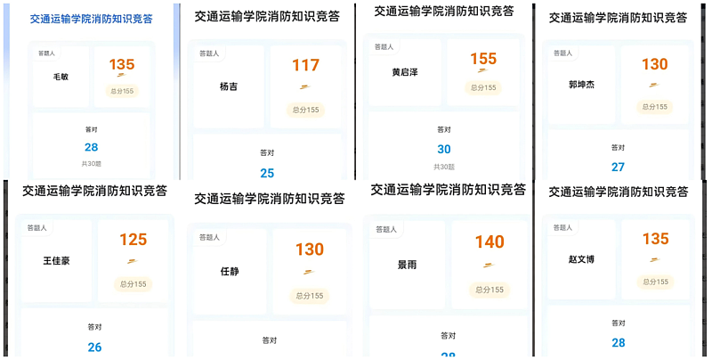 “云端答题+以赛促学”的消防知识线上竞答环节,吸引了全院学子踊跃参与。题库围绕火灾预防、灭火器操作、逃生技巧、宿舍安全规范等核心知识点设计,题目兼具专业性与实用性。同学们利用课余时间登录答题平台,在限时比拼中检验学习成果、查漏补缺。