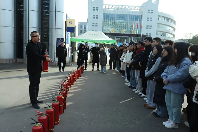 消防演练学习环节是本次系列活动的重点。学院邀请校保卫处消防专员现场指导,详细讲解了不同类型灭火器的适用场景、操作步骤(提、拔、握、压)以及火灾现场的逃生技巧。在模拟火灾场景中,师生们按照指导分组进行实操演练,从发现火情、拨打火警电话,到正确使用灭火器扑灭火源、低姿弯腰快速疏散,每个环节都有条不紊。通过“理论讲解+实操体验”的模式,大家直观掌握了火灾应急处置的关键流程,有效提升了面对突发火情时的心理素质与实操能力。