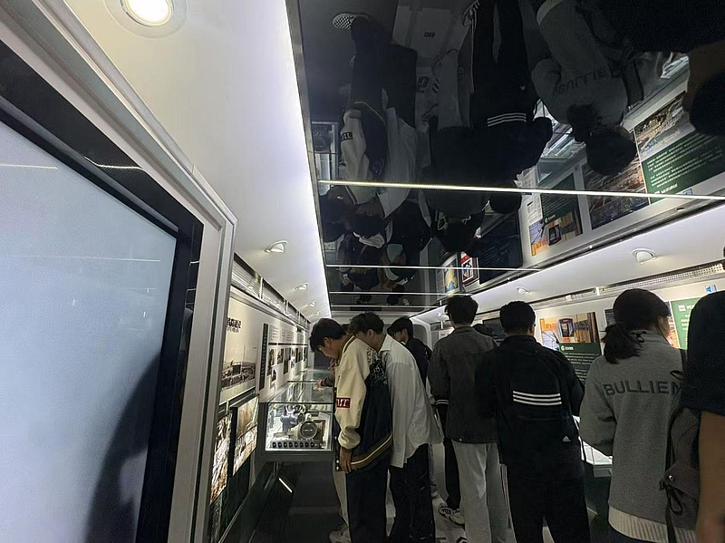 他们围绕在展品前,结合自身专业,与讲解员和带队老师积极交流,对所学专业的行业背景、技术前沿和未来使命有了更为直观和深刻的认识,心中“交通强国”的理想信念种子悄然生根发芽。