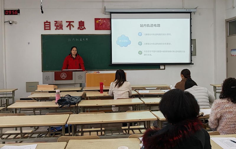 李欢则聚焦“站内轨道电路”进行专题分享,重点围绕划分原则与命名方法展开讲解。她首先从技术规范与运营需求出发,阐述了站内轨道电路的划分依据,包括区段长度、设备类型与行车密度等因素,并通过站场示意图展示了典型划分模式。在命名部分,李欢结合行业标准与实际应用,详细说明了轨道电路编号的规则与意义,强调了命名系统在设备管理与故障排查中的实用性。她还通过模拟调度场景,引导学生思考划分与命名对运营效率的影响,使教学内容更加贴近现场实际。