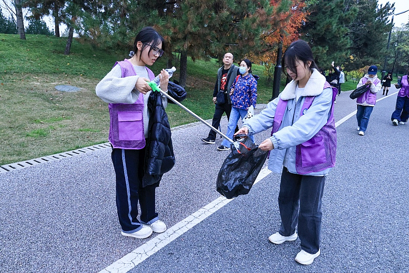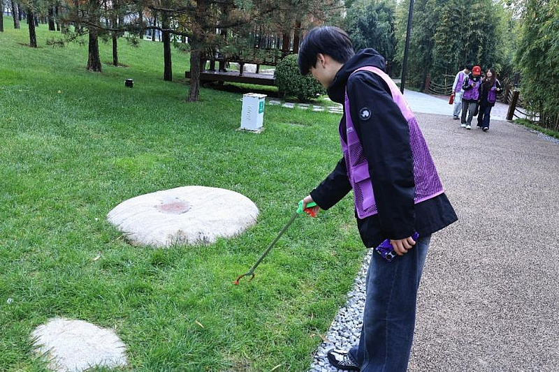 “弯腰捡拾的动作,是青春最美的姿势。”身着紫色志愿马甲的大学生们走进城市公园,开展“清理环境护生态”志愿行动,用双手为公园拂去“尘埃”,成为景致中一抹亮眼的青春色彩。