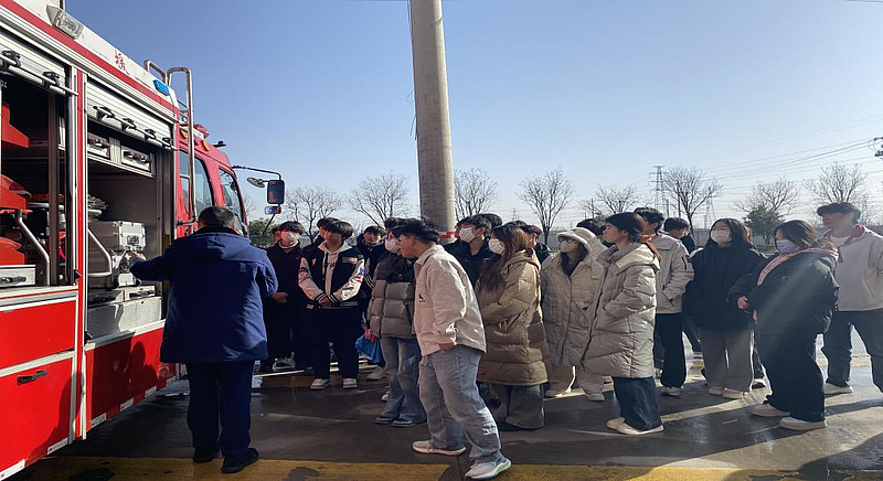 12月13日,学院辅导员带领学生代表前往振兴北路消防救援站,开展“零距离学消防”实践教育活动,消防救援站消防员冯浩全程负责讲解与指导。活动中,冯浩结合真实火灾案例,生动拆解“报警、灭火、逃生”三大关键环节的操作规范,覆盖家庭火灾初期扑救、公共场所疏散逃生等多场景应急流程;随后带领学生走近消防车队,逐一介绍云梯消防车适用于高层建筑救援、水罐消防车主打初期火灾供水、抢险救援车配备专业工具应对交通事故、地震救援的功能定位。在装备展示区,冯浩还现场演示了消防服、空气呼吸器、破拆工具的使用方法与适用场景,让学生直观感受消防工作的专业性与严谨性,成功将消防安全知识从“课堂理论”转化为“实践技能”。