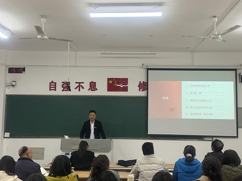 杜国庆聚焦教学核心工作和迎评关键任务,从五个方面作了细化部署、提出了具体要求。他指出,开学前教学准备工作是保障教学秩序平稳运行的基础,全体教师要认真梳理教学内容、完善教学方案、检查教学设备,确保开学教学工作有序开展;要精心打磨开学第一课,立足思政课育人功能,创新教学形式、丰富教学内容,增强思政课堂的吸引力、感染力和实效性,引导学生坚定理想信念、厚植家国情怀;针对教师业务档案整改工作,杜国庆副院长要求严格按照学校规范,细化整改措施、明确整改时限,确保档案资料完整规范、真实有效,进一步规范教学管理基础工作;要全面开展期末试卷资料复查工作,严把教学材料质量关,及时发现问题、整改问题,不断提升教学管理规范化水平。他着重强调,教学评估是当前学院最重要的工作任务,全体教师要提高站位、高度重视,牢固树立“以评促建、以评促改、以评促强”的理念,聚焦评估指标,补齐工作短板,全力以赴冲刺迎评,确保圆满完成各项评估任务。