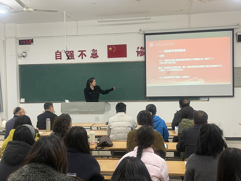 李禾俊结合自身督导工作经验,对全体教师提出具体要求和注意事项。他强调,全体教师要严格恪守教学规范,聚焦课堂教学实效,精准把控教学各环节,杜绝教学疏漏;要紧扣迎评要求,对标评估指标,细化教学细节、完善相关材料,确保各项教学工作符合评估标准;要强化学习提升,主动钻研教学方法,不断提升思政课教学水平,同时注重自身师德师风建设,以严谨治学、为人师表的作风履行育人职责。