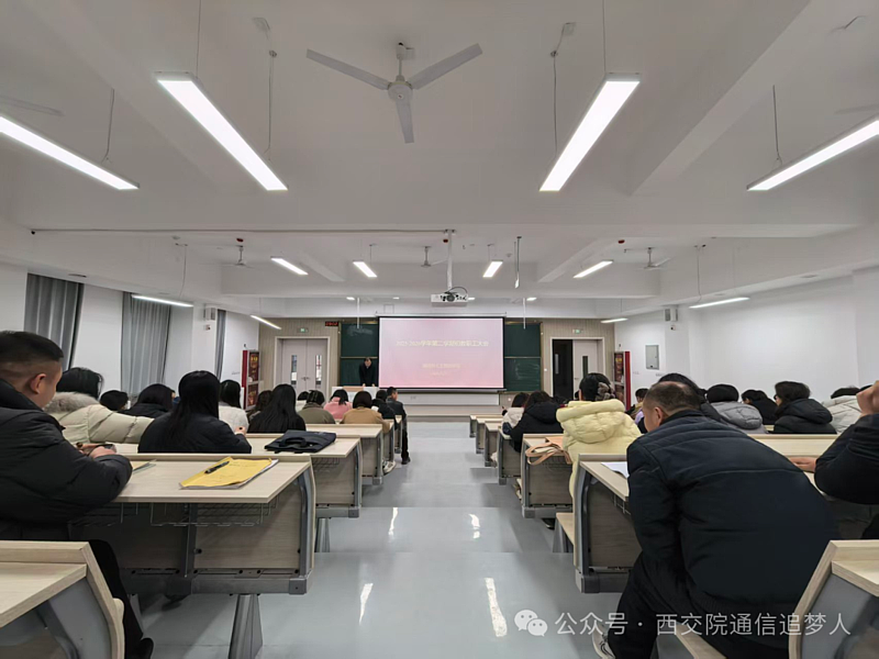 为深入贯彻学校中层及以上干部会议精神,全面部署新学期开学筹备与本科教学工作合格评估迎检任务,近日,通信人工智能学院召开 2025-2026 学年第二学期期初教职工大会。院长李乃乾、党委书记张雯雯、副院长孙文高、副院长王冠军及全体教职工参会,会议以 “评建融合、守正创新” 为核心,明确了新学期重点工作方向与实施路径。