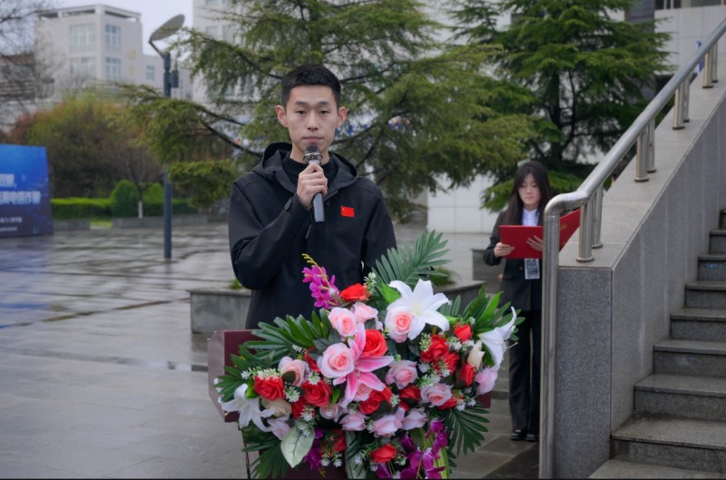 学生代表任欣雨同学以“清明祭先烈 青春永担当”为主题作发言。她深情回顾百年征程中革命先烈抛头颅、洒热血的英勇事迹,郑重发声“人民不会忘记,历史不会忘记”,号召全体同学以革命先烈为精神榜样,坚定理想信念、勤学专业知识,将缅怀感恩之心转化为青春担当之行,让红色血脉在新时代青年身上永续传承。教师代表雒鹏翔老师立足育人使命发言,勉励青年学子铭记历史、锤炼优良品格,既要心怀理想、仰望星空,也要脚踏实地、深耕学业,在专业学习与实践历练中勇毅前行,以实际行动践行“请党放心,强国有我”的青春誓言。