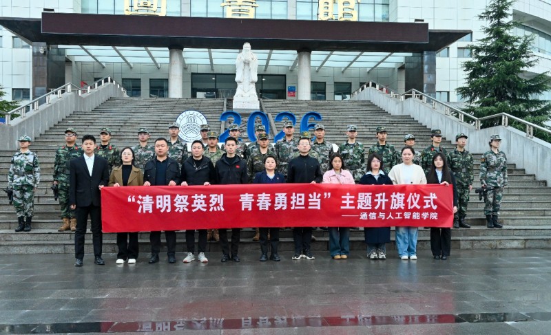 为缅怀革命先烈丰功伟绩,传承红色基因,凝聚青年奋进力量,在清明节来临之际,通信与人工智能学院于3月30日清晨,在图书馆前升旗台隆重举行“清明祭先烈 青春永担当”主题升旗仪式。学院党委书记张雯雯、全体辅导员老师及大一大二全体学生参加。此次升旗仪式由学院团总支书记薛华主持。