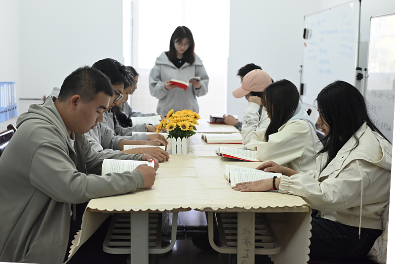 4月9日下午,校团委青年之家・学习社在校园晨读园举办第二期读书分享会。活动现场,青年学子有序签到、领取学习资料,在学习社骨干领学下,齐声诵读书中经典篇目,围绕 “爱国、励志、求真、力行” 认真圈画批注、记录青春金句,在朗朗书声中感悟领袖关怀。互动交流阶段,同学们结合自身专业,围绕 “如何在专业领域担当大任” 等话题畅所欲言,跨专业交流激发思想火花,让理论学习与成长实践深度融合。活动尾声,书籍统一回收循环使用,现场整洁有序,充分展现青年学子良好的文明素养。