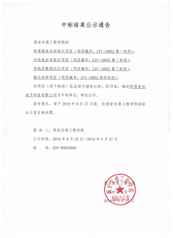 中标结果公示通知