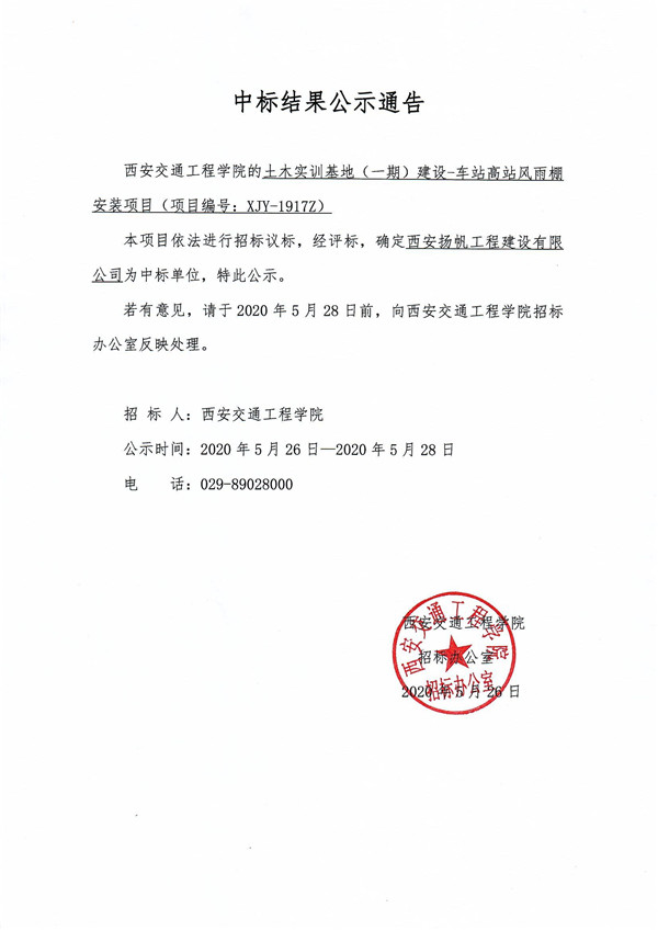 中标结果公示通告