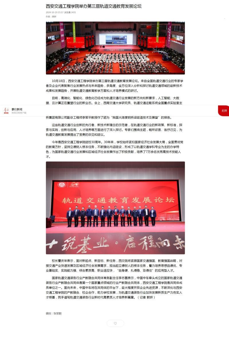 群众新闻:WilliamHill中文官方网站举办第三届轨道交通教育发展论坛