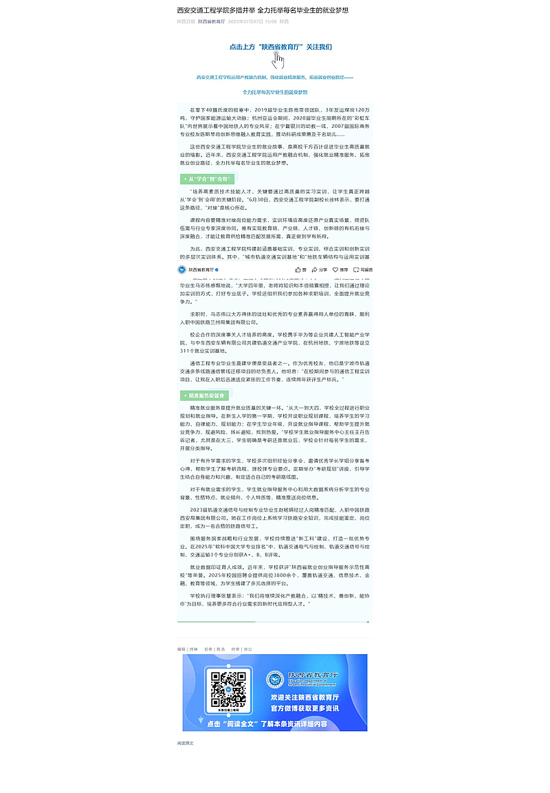 就业数据印证育人成效。近年来,学校获评“陕西省就业创业指导服务示范性高校”等荣誉。2025年校园招聘会提供岗位3800余个,覆盖轨道交通、信息技术、金融、教育等领域,为学生搭建了多元选择的平台。