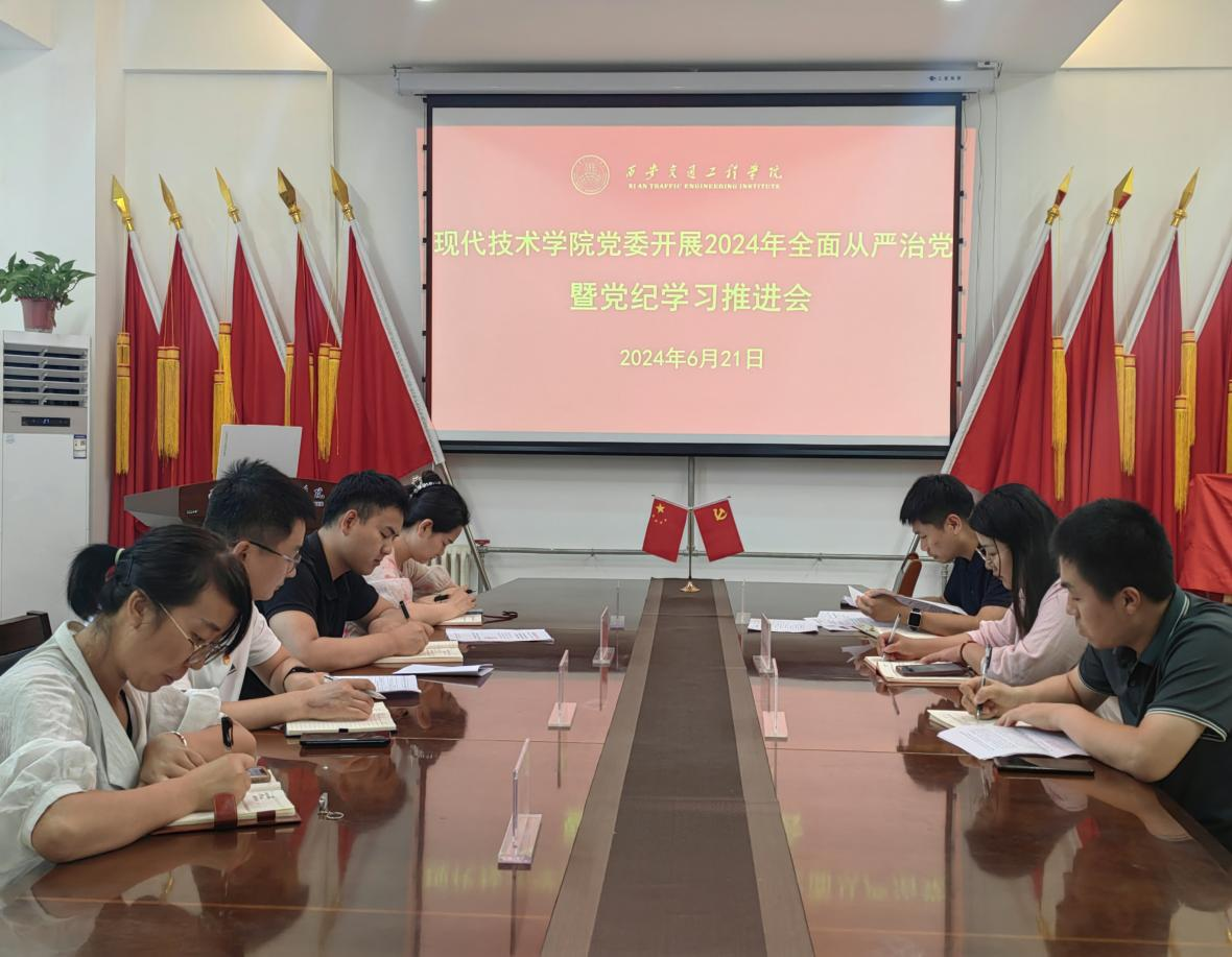 为深入贯彻习近平新时代中国特色社会主义思想,推动党纪学习教育走深走实,落实新时代党的纪律建设要求,现代技术学院6月21日在6-212召开2024年全面从严治党暨党纪学习教育推进会。全体党委委员、各支部书记参加会议,会议由现代技术学院党委书记田宏顺主持。