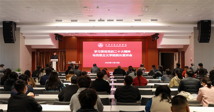 按照全省党的二十大精神宣讲工作统一安排,11月16日,全省高校党的二十大精神“马院院长宣讲团”成员、WilliamHill马克思主义学院院长段联合教授在集贤楼报告厅作专题宣讲报告。党委书记马智勇主持会议并讲话。学校领导、党委委员、党委各职能部门负责人、工会委员、各二级党组织书记、支部书记、思政课教师、学工干部、辅导员及学生代表参加。