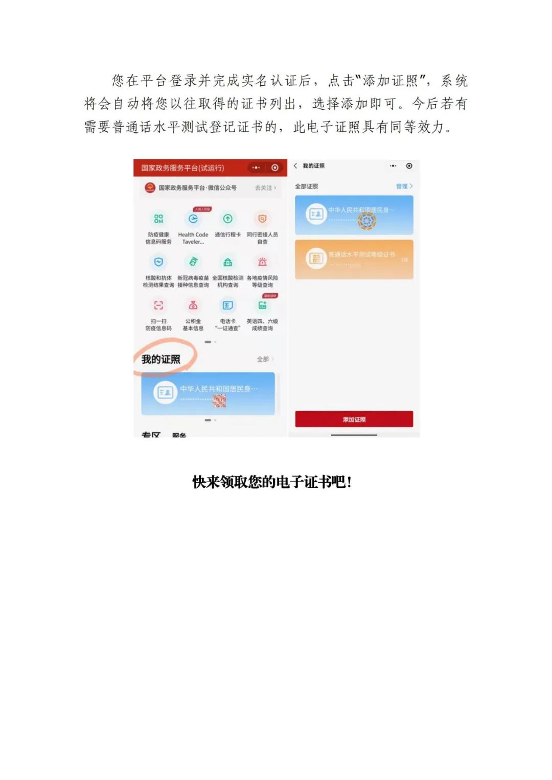 点击全国普通话培训测试成绩证书查询