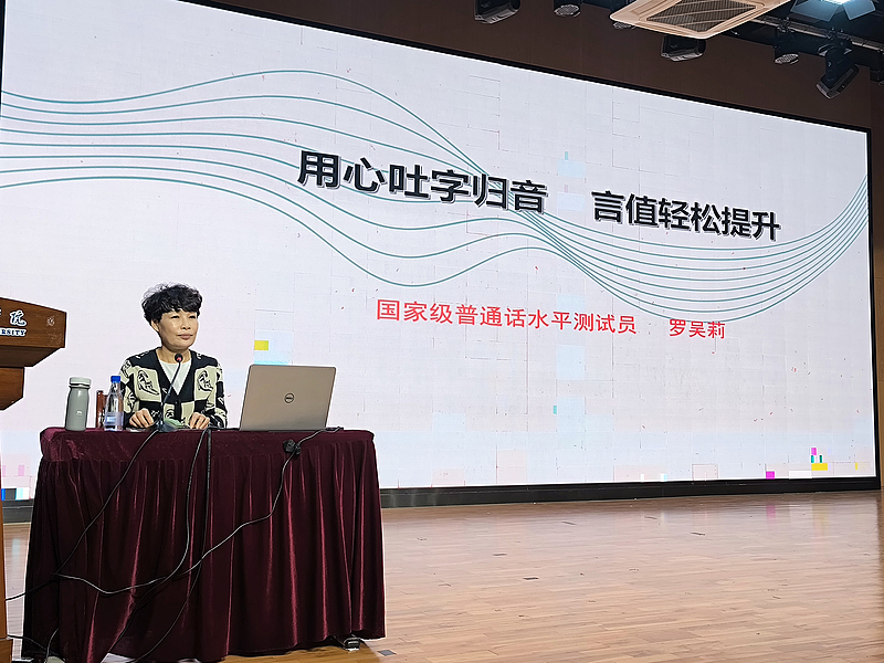 第三场讲座主题为“‘用心’吐字归音 ‘言值’轻松提升”,旨在提升普通话发音水平与测试得分的实用普测技能培训。报告聚焦发音细节,助力师生高效备考。