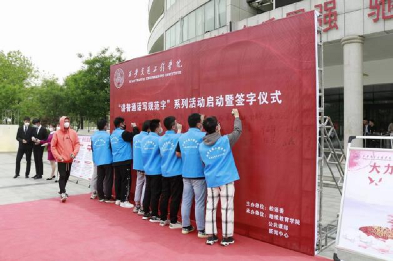 随后,学生们纷纷在“讲普通话,写规范字”签名墙前签名,并积极加入到“讲好普通话,争做文明人”演讲比赛、“百年伟业,你我共诵”诵读比赛、“时代新篇,你我共书”硬笔书写比赛的系列活动中。