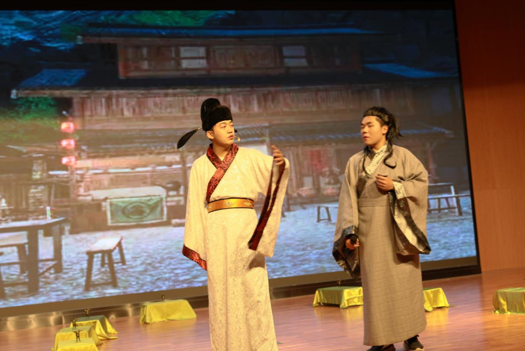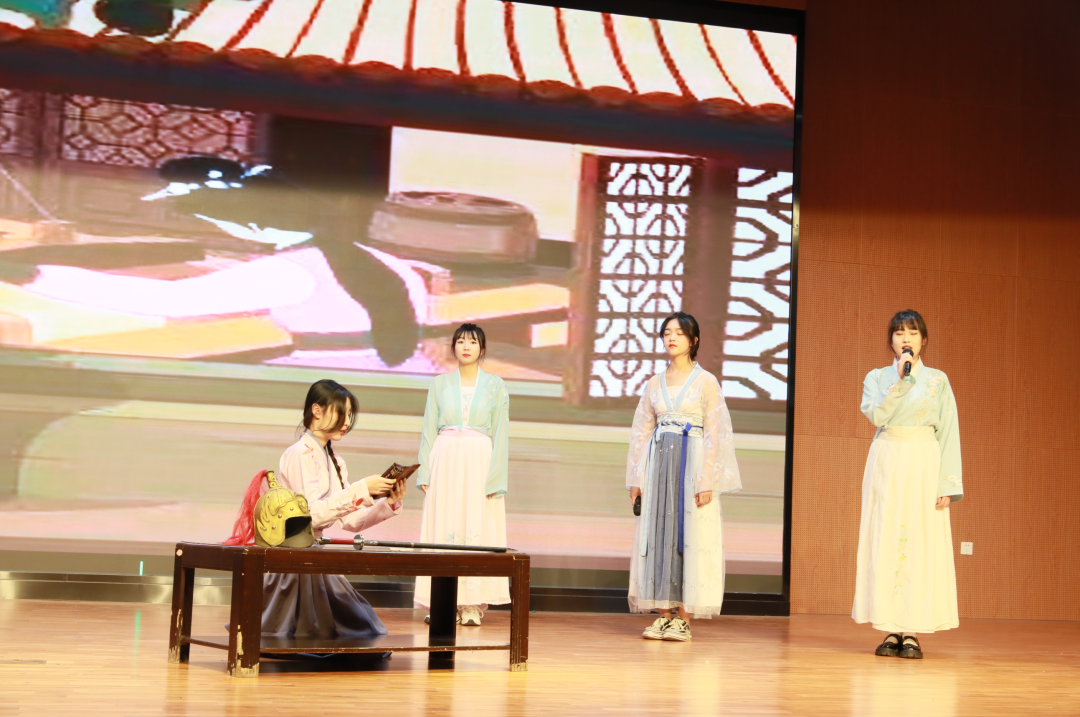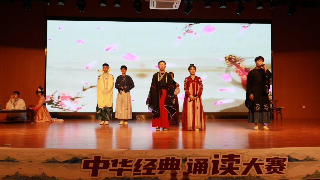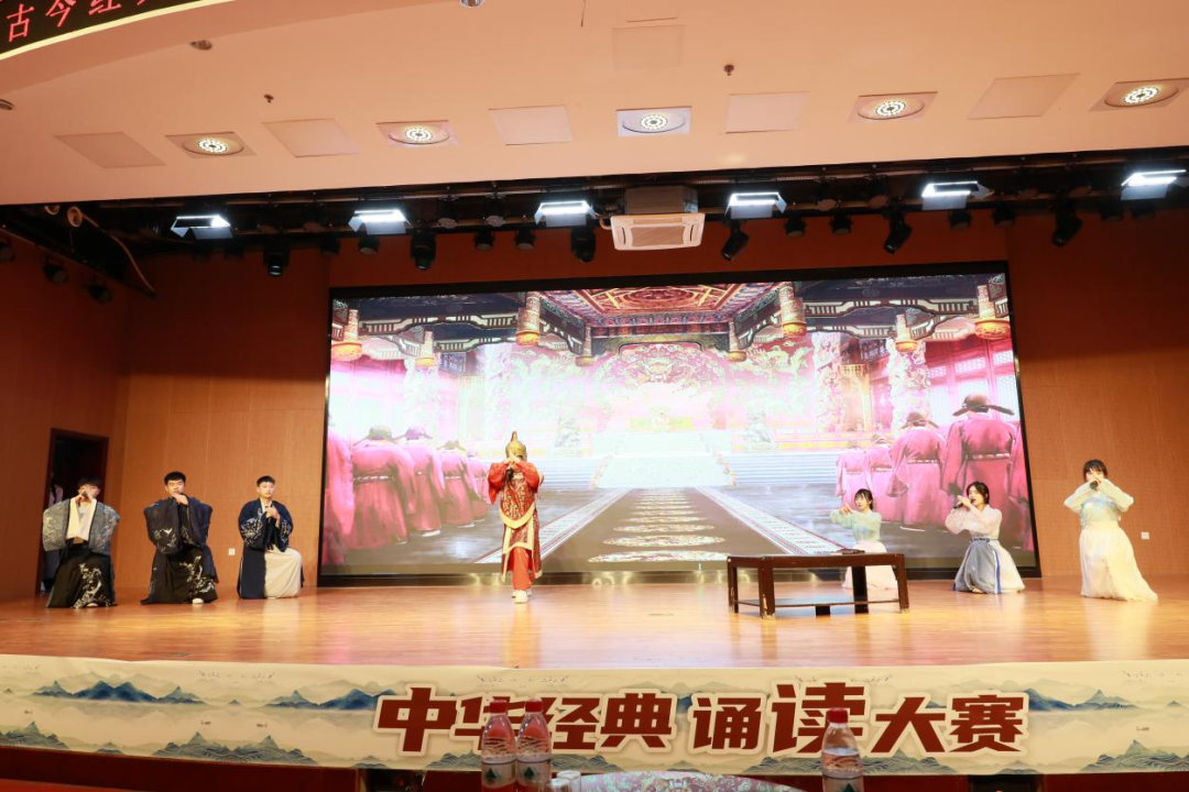中文教研室黄英、赵嘉欣、高玲、安丹丹,教务处李妍5位教师担任大赛评委。大赛在交通运输学院同学们衣袂飘飘的古典舞《唐印》中拉开帷幕。同学们个个精神焕发、饱含激情诵读了《将进酒》《琵琶行》《长恨歌》《声声慢》《出师表》《木兰辞》等经典国学篇目,参赛选手或慷慨激昂,或低声吟唱,或娓娓道来,酣畅淋漓的抒发了自己的家国情怀,精彩的表演赢得经久不息的掌声和喝彩,让现场的评委与观众为之惊叹。大学艺术团姑娘们带来的傣族舞《竹林晨雨》,幽静唯美、袅袅婷婷,给现场观众带来艺术美的享受。大赛在国风歌伴舞《不染》中圆满结束,呈现了一台当代大学生展示国学经典文化的视听盛宴。